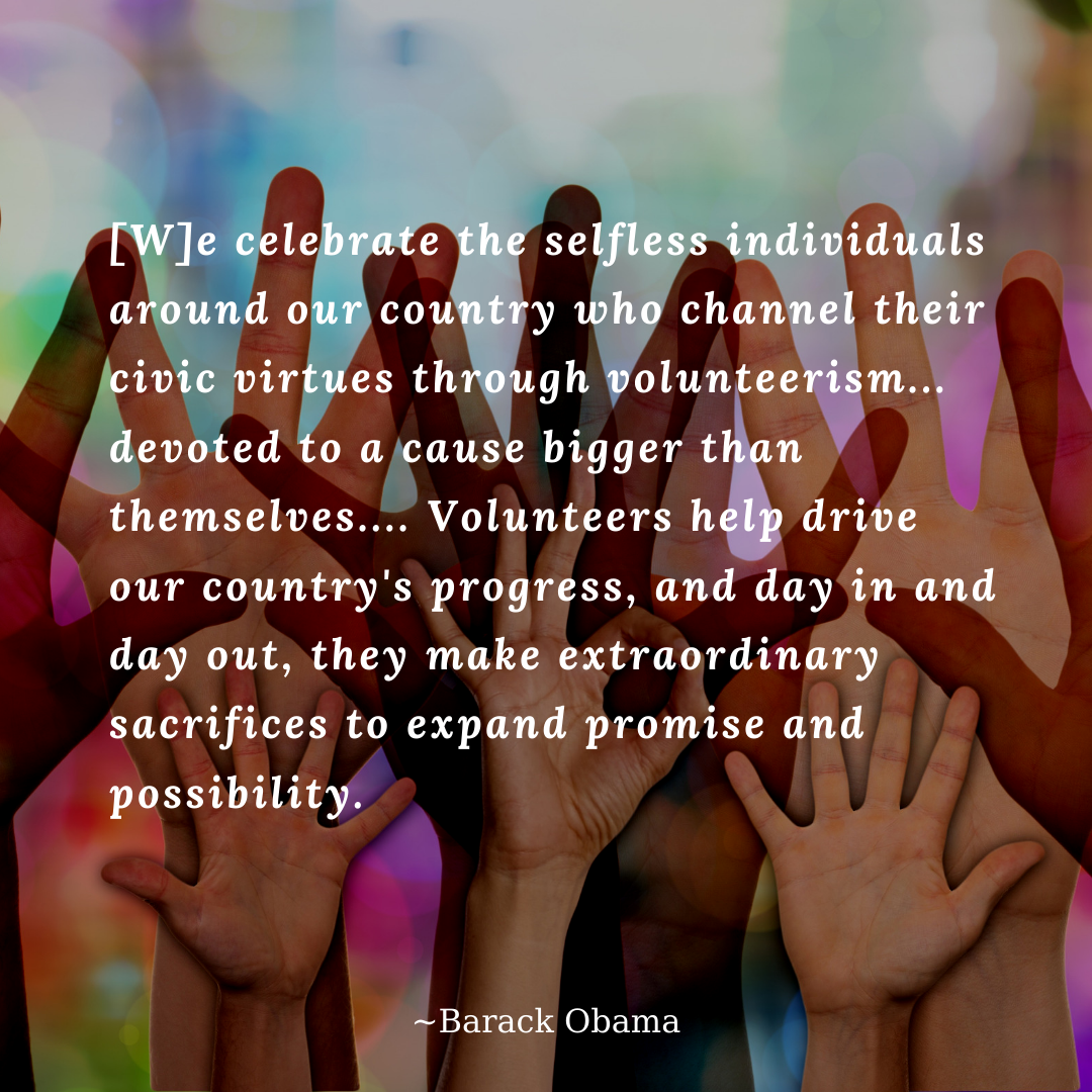 5. [W]e celebrate the selfless individuals around our country who channel their civic virtues through volunteerism... devoted to a cause bigger than themselves.... Volunteers help drive our country's progress, and day in and day out, they make extraordinary sacrifices to expand promise and possibility.